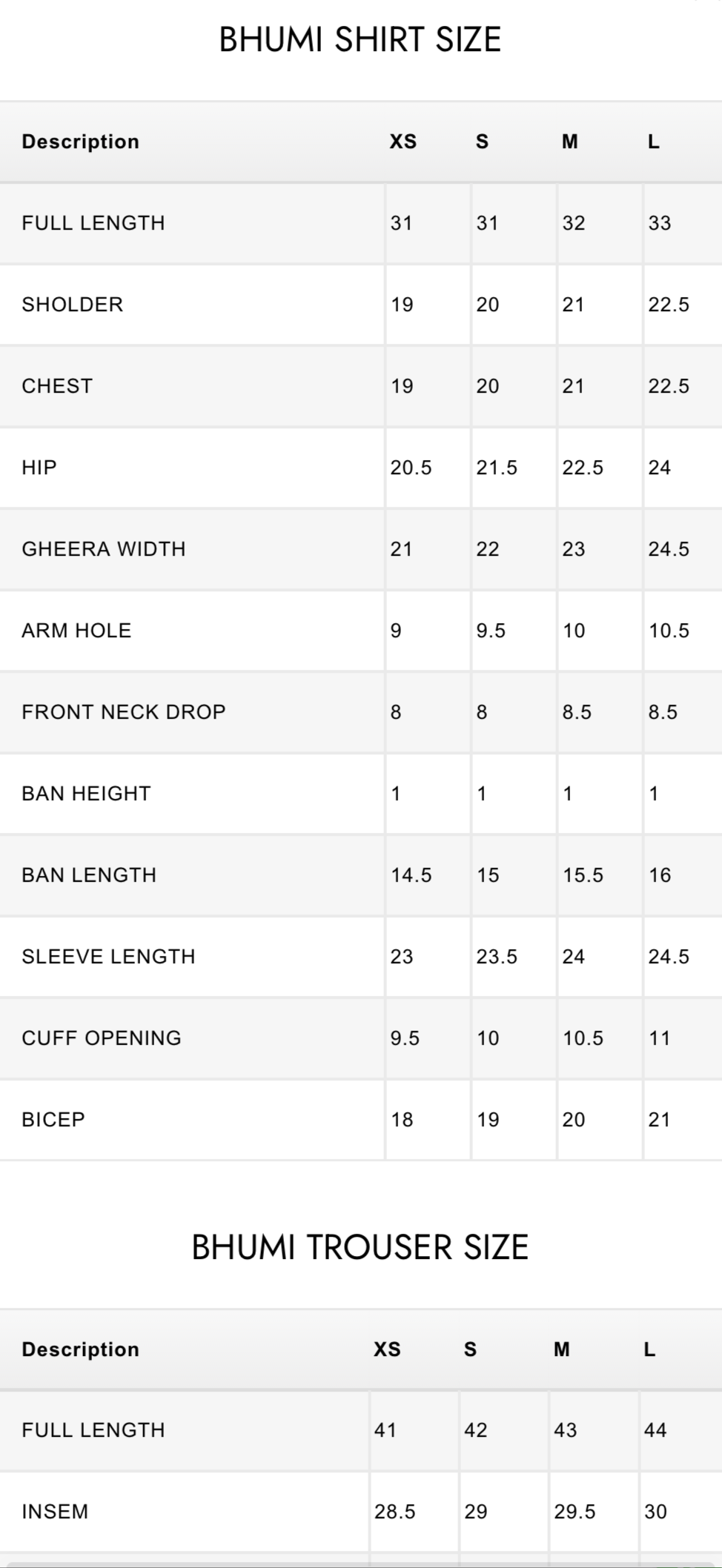 Package Includes: 2pc Shirt & Trouser, separate scarf