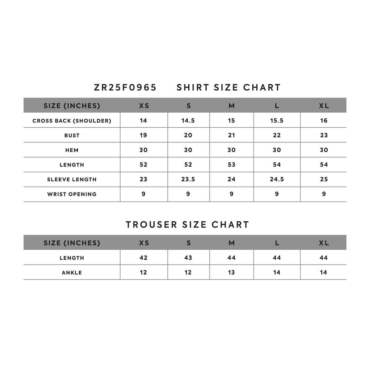 The paneled kurta features delicate embroidery on the front and sleeves, enhanced with subtle embellishments that add depth and grace. The structured silhouette flatters the form while maintaining a timeless, refined appeal.