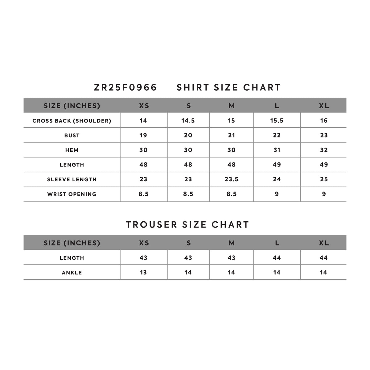 Crafted in chiffon georgette, the shirt features ivory schiffli embroidery and silk finishing on the sleeves, adding depth and sophistication to its soft, flowing silhouette. An undershirt in medium raw silk provides structure and comfort, allowing the embroidered layer to stand out beautifully.