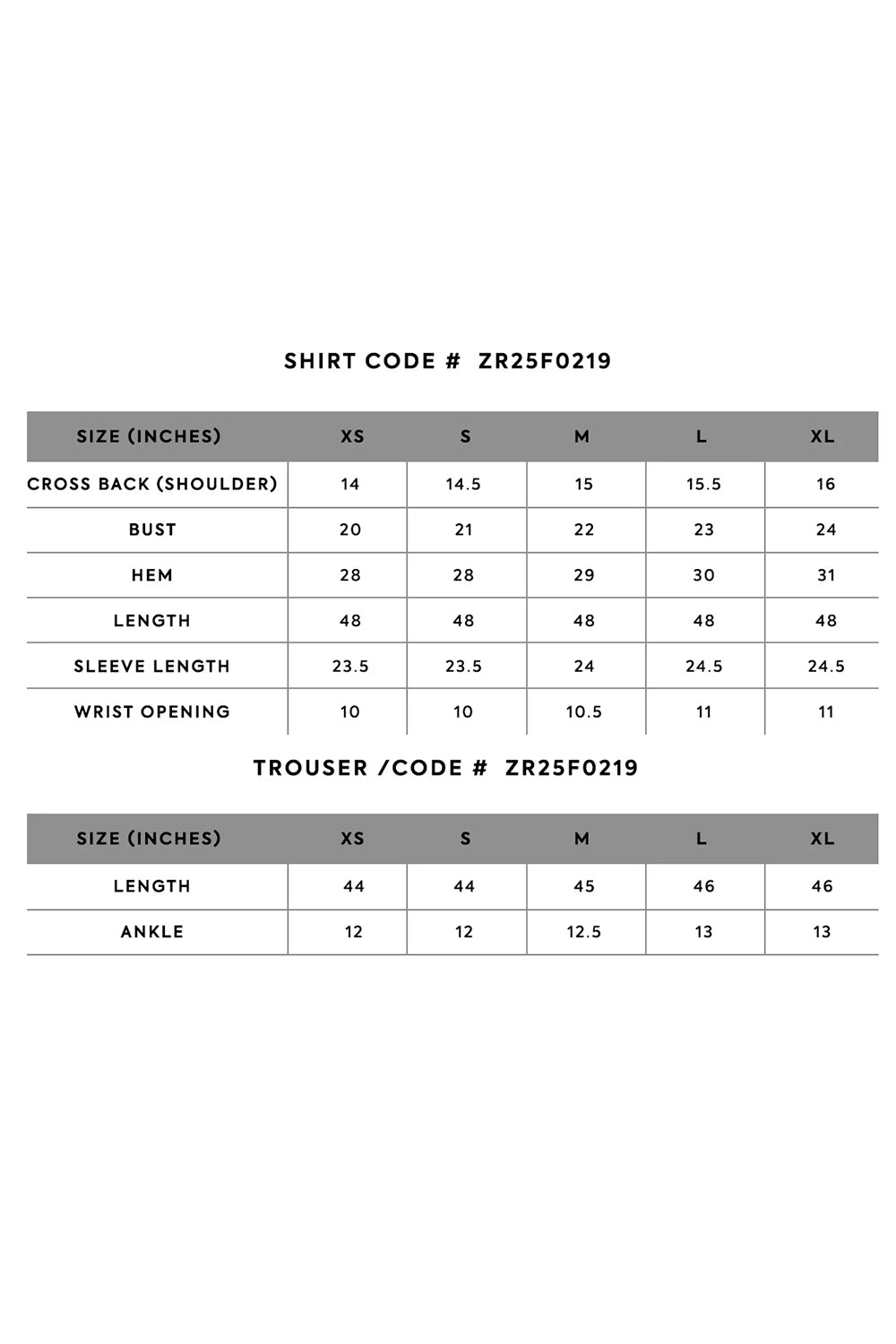 • Shirt: The shirt is crafted from a rich, luxurious fabric with a deep, warm brown base that provides a sophisticated, earthy undertone. The rust-colored gara embroidery is meticulously done that stands out beautifully against the dark brown fabric, creating a stunning visual appeal. The sleeves of the shirt are a standout feature, drawing attention with bold tassel details.