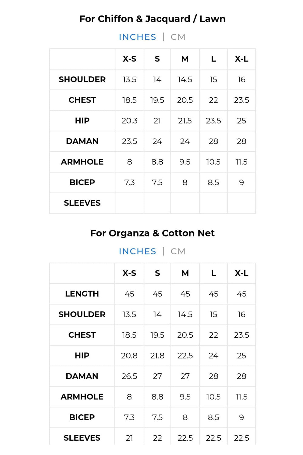 Sizes: XS, S, M, L, XL